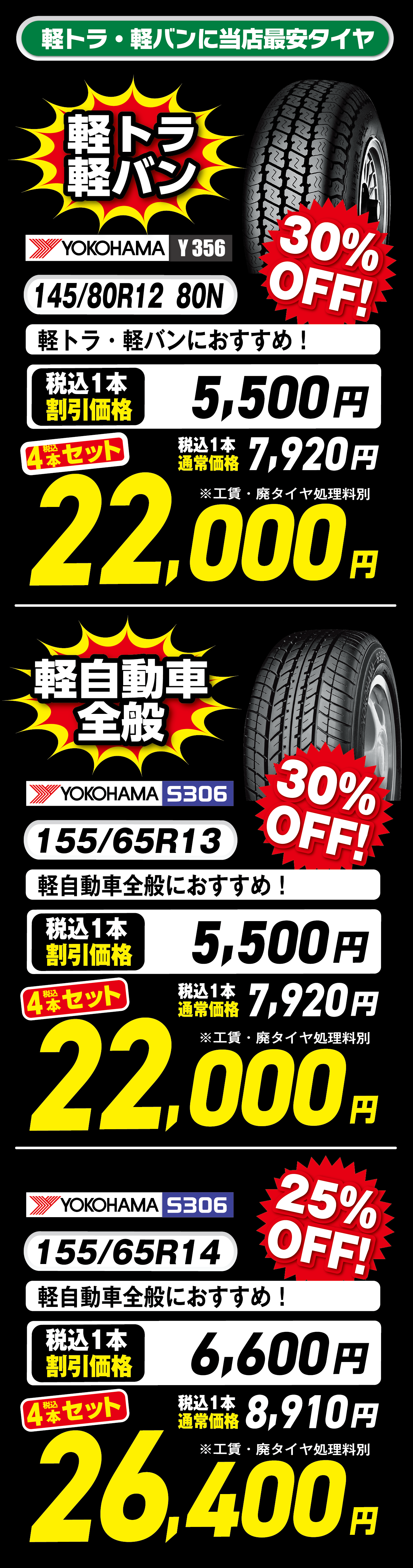 「軽トラ・軽バンに当店最安タイヤ」価格一覧